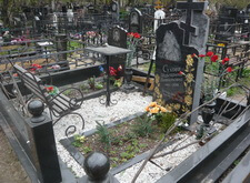Состояние могилы после небольшого цикла работ. Покрашена лавка и ограда, обновлены розочки на ограде, помыты памятники и гранитный цоколь, убраны цветники и сорняки, почищена мраморная крошка. На могилу возложили свежие цветы.
