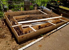 Далее устанавливаем подставки под памятники, заливаем их бетоном и ещё раз кладём подложку.