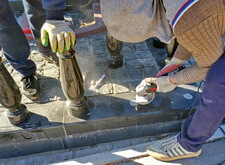 Начинается процесс монтажа. Доставляем памятники, крепим их, приклеиваем и насаживаем на штыри все конструктивные элементы надгробий.